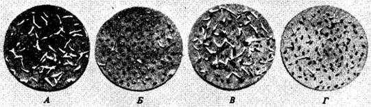 Рис. 25-11. Свет и прорастание семян латука. А. Семена, выставленные на короткое время на красный свет. Б. Семена, выставленные на красный свет, затем на дальний красный свет. В. Семена, выставленные последовательно на красный, дальний красный, красный свет. Г. Семена, выставленные последовательно на красный, дальний красный, красный, дальний красный свет. Так или иначе, семена прорастали в зависимости от конечной длины волны в серии экспозиций — красного света, способствующего прорастанию, и дальнего красного, подавляющего его