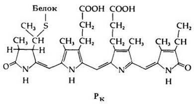 Рис. 25-14. Хромофор фитохрома (формы Рк); видна его связь с белковой частью молекулы