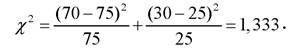 де f - кількість особин з фенотипами певного класу у вибірці, f0 - очікувана кількість, знак суми вказує на підсумовування по всіх фенотипових класах (числом п). Припустимо, наприклад, що у схрещуванні гороху з жовтим і зеленим насінням (рис. 3.1) у другому поколінні отримано 70 рослин з жовтим насінням і 30 - із зеленим (n = 2). Нульова гіпотеза передбачає співвідношення 3 : 1, тобто очікувані кількості становлять відповідно 75 і 25. Застосування наведеної формули дає