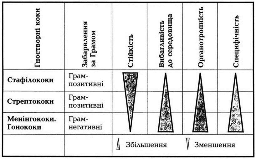 Загальна характеристика гноєтворних коків подана на мал. 13.