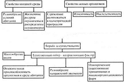 Суть теории Дарвина можно представить в виде схемы, отражающей причинно-следственные связи.