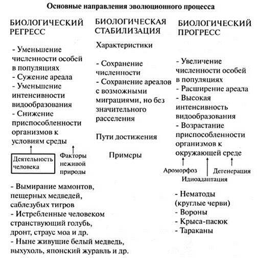 — Современные представления о направлениях эволюции основываются на работах И.И. Шмальгаузена и А.Н. Северцова. А.Н. Северцов выделил понятия биологического регресса и прогресса.