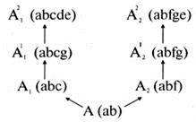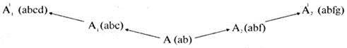 Допустим, что потомки организма А, характеризующегося признаками аЬ попадают в разные условия и в результате получают новые признаки (cd и fg). Разошедшиеся формы А'1 и А12 обладают, с одной стороны, сходными признаками аЬ, указывающими на общность их происхождения, и, с другой стороны, различными признаками cd и fg, свидетельствующими о приспособлении к различным условиям среды. Следовательно, при дивергенции сходство объясняется родством, а различия — приспособлением к разной среде.