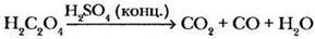 При нагревании с концентрированной серной кислотой щавелевая кислота разлагается на оксиды углерода (II) и (IV) и воду: