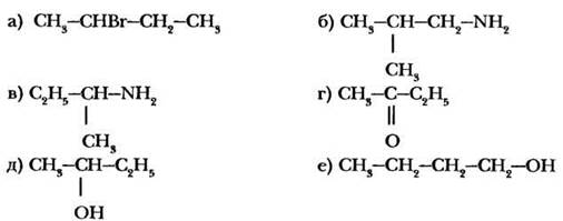 Какие из веществ, структурные формулы которых приведены ниже, являются изомерами?