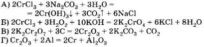 = 2Cr(OH)3l + ЗС02Т + 6NaCl Б) 2СгС13 + ЗН202 + ЮКОН = 2К2СЮ4 + 6КС1 + 8Н20
