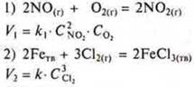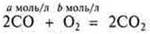 где СА, СВ— концентрации реагирующих веществ, моль/л, k1, k2 — константы скорости реакции.