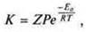 где К — константа скорости; Z — число столкновений молекул, частиц в секунду в единице объема; Р — стереохимический множитель; е — основание натурального логарифма (е = 3,718); R— универсальная газовая постоянная (R = 8,314 Дж/мольК); Т — температура в Кельвинах (273° + t°С); Еа — энергия активации.