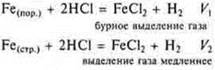 в) природа реагирующих веществ: Mg(пор.) и НСl Fе(пор.) и НСl |