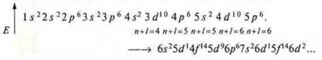 У элементов пятого периода идет заполнение 5s → 4d → 5р, шестого периода 6s → 5d1 → 4f → 5d10 → 6р.