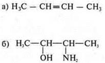 а) Н3С—СН = СН—СН3 — ациклическое, непредельное, алкен; свойства алкенов;