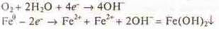 Такая коррозия называется электрохимической. Вода — слабый электролит, который часто как пленка присутствует на поверхности металла. В этой пленке растворяются газы атмосферы — кислород, углекислый газ, примеси в виде SО2 — оксида серы (IV), NO2 - оксида aзотa (IV) и т. д., в результате образуется кислотный слой. Следует знать, что соприкосновение металлов может быть непосредственно с электролитами. При хранении металлов в атмосферных условиях электролиты могут образоваться сразу, если в емкость попадает вода, влажный воздух. Это характерно для больших городов, промышленных центров.