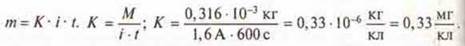 где К - электрический эквивалент (кг/кл).