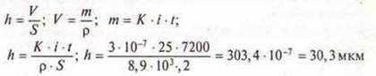 При никелировании детали в течение 2 ч сила тока, проходящая через ванну, была 0,25 А. К = 3 · 10-7 кг/Кл, с = 8,9 · 103 кг/м3.