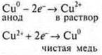 Учитель химии дополняет этот момент и объясняет учащимся понятия «растворимый анод»; «медная болванка», «катод (инертный угольный)»: