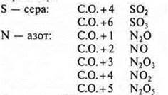 В оксидах неметаллов элемент-неметалл имеет положительную С.О. Один и тот же элемент, имея несколько положительных С.О., может образовать несколько оксидов.