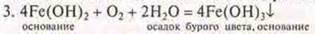 На воздухе Fe(OH)2 окисляется в Fe(OH)3 — гидроксид железа (III) бурого цвета.