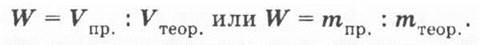 Учитель обобщает, что отношения объема (или массы) полученного продукта — практический выход к объему (или массе) рассчитанного теоретически и называется долей выхода — ωвых.или W: