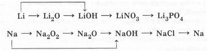 1. Генетические ряды лития и натрия могут быть рассмотрены с помощью следующих цепочек превращений: