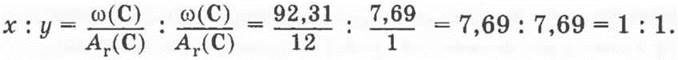 3. Найти отношение индексов х:у:z, которое является отношением частных от деления массовой доли элемента на его относительную атомную массу. Привести частные от деления к отношению целых чисел. Определить простейшую формулу вещества.