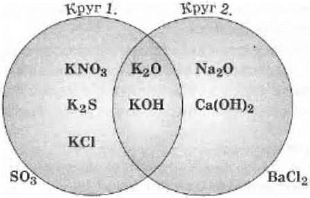Как можно назвать вещества, входящие в круг 1, круг 2 и область пересечения?