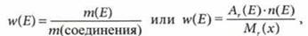 где Аr(Е) — относительная атомная масса элемента, n(Е) — количество атомов элемента в данном веществе, Мr(х) — относительная молекулярная масса вещества х. Величина w не имеет размерности. Ее часто выражают в процентах: