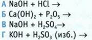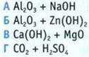 Г Н2O 5. Какое из веществ: ортофосфорная кислота, хлорид цинка, хлорид железа(II) — при добавлении щелочи образует осадок, который растворяется в избытке щелочи? Составьте соответствующие уравнения реакций. 6. При соединении растворов, содержащих сульфат меди(II) и гидроксид калия, получили 9,8 г осадка. Осадок отфильтровали, высушили и подвергли термическому разложению. Определите количество образовавшегося при этом оксида меди(II). 7. Какой объем оксида углерода(IV) необходимо пропустить через раствор гидроксида бария (н. у.), чтобы получить 0,4 моль осадка? 8. Сульфид цинка количеством вещества 0,6 моль подвергли выпариванию, а образовавшийся оксид цинка превратили в ортофосфат цинка. Вычислите массу полученной соли. 9. Щелочи, образовавшейся в результате взаимодействия лития с водой, хватило, чтобы нейтрализовать серную кислоту количеством вещества 0,4 моль. Какая масса лития прореагировала? 10. Дополните цепочку по аналогии: 11. Смесь меди и алюминия массой 20 г обработали соляной кислотой, при этом выделилось 6,72 л газа (н. у.). Определите массовые доли металлов в смеси. 12. Выведите формулу газа, молекула которого состоит из атомов водорода и серы, а их массы в молекуле относятся как 1 : 16. В ответе укажите сумму индексов в найденном соединении. 13. Напишите уравнения реакций, которые показывают амфотерный характер оксида свинца(II). 14. С помощью какого реагента можно распознать растворы трех веществ: хлорида калия, хлорида алюминия и хлорида магния? 15. Напишите уравнения реакций гидролиза NH4NO3 в сокращенной ионной и ионно-молекулярной формах. Укажите реакцию среды в растворе этой соли. ТЕСТОВЫЕ ЗАДАНИЯ 1. Укажите пару соединений, которые взаимодействуют. 2. Укажите вещество, с которым взаимодействует гидроксид калия. А нитрат натрия Б оксид меди В сульфат бария Г нитрат железа(II) 3. Укажите схему реакции, в результате которой можно получить гидроксид калия. 4. Укажите оксид, который образуется при разложении гидроксида железа(III). A Fe2O3 Б FeO В Fe3O4 Г СuО 5. Укажите уравнение реакции нейтрализации. 6. Укажите металл, который не взаимодействует с хлоридом меди(II). А желез. Б алюминий В цин. Г золото 7. Укажите схему реакции, с помощью которой можно получить кислую соль. 8. Укажите сумму коэффициентов в правой и левой частях уравнения, схема которого А . Б 6 В . Г 7 9. Установите соответствие между оксидом и кислотой. Оксид Кислота 1 SO2 A H2SO4 2 SO3 Б Н3РO4 3 Р2O5 В H2SO3 4 Р2O3 Г Н3РO3 Д HClO4 10. Среди приведенных оксидов укажите ионное вещество. А Р2O5 Б Cl2O7 В Na2O Г SO2 11. Укажите массу нитрата кальция, образовавшегося в результате взаимодействия азотной кислоты массой 25,2 г с оксидом кальция. А 30 г Б 3 г В 32,8 г Г 82,3 г 12. Укажите количество вещества ортофосфорной кислоты, которая образуется при взаимодействии оксида фосфора(V) массой 14,2 г с достаточным количеством воды. А 0,1 моль Б 1 моль В 0,2 моль Г 2 моль 13. В результате взаимодействия 14,6 г смеси цинка и окиси цинка с достаточным количеством соляной кислоты выделилось 2,24 л водорода (н. у.). Образовалась соль массой А 26 г Б 27 г В 27,2 г Г 26,2 г 14. К несолеобразующим оксидам относится А СO2 Б NO2 В NO Г N2O5 15. В ряде кислот отметьте более слабую. A HNO3 Б Н3РO4 В H2SiO3 Г HF![]()