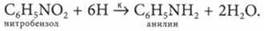 Анилин продумают восстановлением ароматических нитросоединений до ароматических аминов — реакция Зинина: