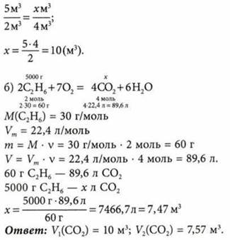 Сколько образуется кубических метров оксида углерода(IV) при сжигании (н. у.): а) 5 м3 этана б) 5 кг этана?