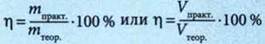 mтеор. или Vтеор. — теоретически возможную массу (объем) продукта рассчитывают по уравнению химической реакции.