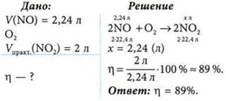 При взаимодействии 2,24 л оксида азота(II) с кислородом образовалось 2 л оксида азота(IV). Определите выход продукта реакции (в %) от теоретически возможного.