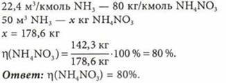 Для производства 142,3 кг аммиачной селитры использовали аммиак объемом 50 м3 (н. у.) и 160 л раствора азотной кислоты с массовой долей 65% (плотность 1391 кг/м3). Определите выход продукта реакции (в %) от теоретически возможного.