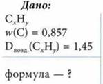 Данные для определения формулы вещества СхНу: