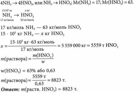 Колонна синтеза аммиака дает 1500 т продукта в сутки. Рассчитайте массу раствора с массовой долей азотной кислоты равной 63%, который получают из этого количества аммиака.
