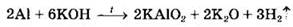 АЛЮМИНИЙ может взаимодействовать как с твердыми щелочами (при сплавлении с ними), так и с водными растворами щелочей. При нагревании с твердыми щелочами алюминий образует оксоалюминаты: