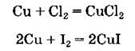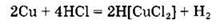Медь в ряду активности металлов располагается после водорода, поэтому, как правило, не выделяет водород из кислот. Порошок меди медленно при нагревании взаимодействует с концентрированной соляной кислотой с выделением водорода и с образованием комплексного соединения меди(I):