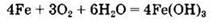 В присутствии кислорода железо медленно взаимодействует с водой, окисляясь до гидроксида железа (III):