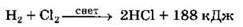 Взаимодействие хлора с водородом требует сильного освещения для своего начала: