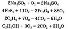 Кислород взаимодействует также со сложными веществами, как неорганическими, так и органическими, например: