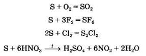 Например, сера как восстановитель вступает в реакции с более сильными окислителями: