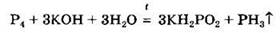 Когда необходимо показать, что в реакцию вступает именно белый фосфор, то уравнение реакции записывают с участием молекул Р4. Так, при взаимодействии белого фосфора с горячим раствором щелочи выделяется газ фосфин:
