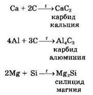 Окислительные свойства для углерода и кремния проявляются только в реакциях с металлами: