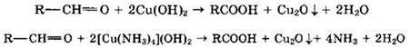 Альдегиды очень легко окисляются в соответствующие карбоновые кислоты под действием даже таких мягких окислителей, как оксид серебра и гидроксид меди (II).