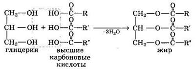 Жиры — сложные эфиры глицерина и высших одноосновных карбоновых кислот.