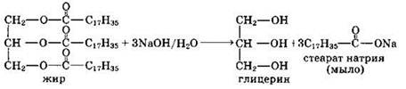 Жирам как сложным эфирам свойственна обратимая реакция гидролиза, катализируемая минеральными кислотами. При участии щелочей (или карбонатов щелочных металлов) гидролиз жиров происходит необратимо. Продуктами в этом случае являются мыла — соли высших карбоновых кислот и щелочных металлов.