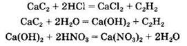 2) Рассчитаны количества веществ реагентов и сделан вывод об избытке карбида кальция: