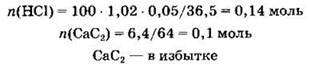 31. К 100мл 5%-ного раствора соляной кислоты (плотностью 1,02 г/мл) добавили 6,4 г карбида кальция. Сколько миллилитров 15%-ной азотной кислоты (плотностью 1,08 г/мл) следует добавить к полученной смеси для ее полной нейтрализации?