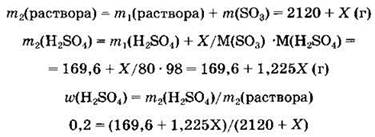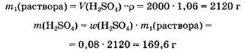 35. Рассчитайте, какую массу оксида серы(У1) добавили в 2000 мл 8%-ного раствора серной кислоты (р = 1,06 г/мл), если массовая доля серной кислоты стала равной 20%.