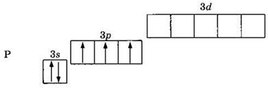 Элемент фосфор, так же как и азот, находится в VA группе, в третьем периоде. В отличие от атома азота, атом фосфора может увеличить свои валентные возможности. Электронная конфигурация его валентных электронов 3s23p3или: