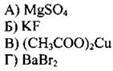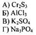 A) сульфид алюминия Б) нитрат железа (III) B) хлорид натрия Г) силикат рубидия |